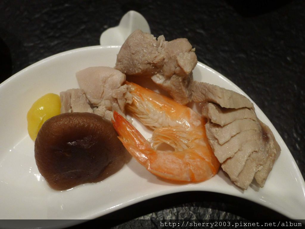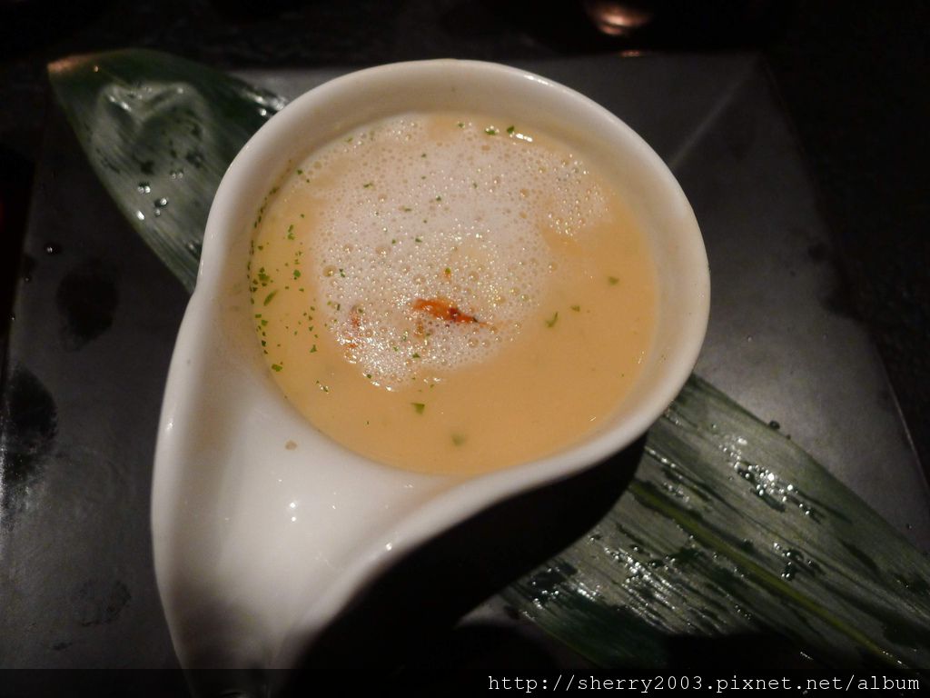 小品之二~櫻花蝦海鮮玉子蒸,上頭的鮮奶泡有點散開了,口感尚可。