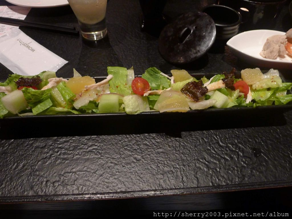 先附(我的理解就是沙拉啦)~深海魚皮野蔬沙拉,魚皮超彈Q的,很有咬勁,聽說也可以幫助養顏,女士們比較喜歡這道。