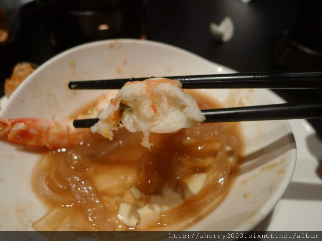 鮮蝦肉質有一定的嫩度,可見不是冷藏庫存多日的,沙線也處理乾淨了,讓人覺得貼心,另外下方的豆腐也是滑嫩滑嫩的好吃。