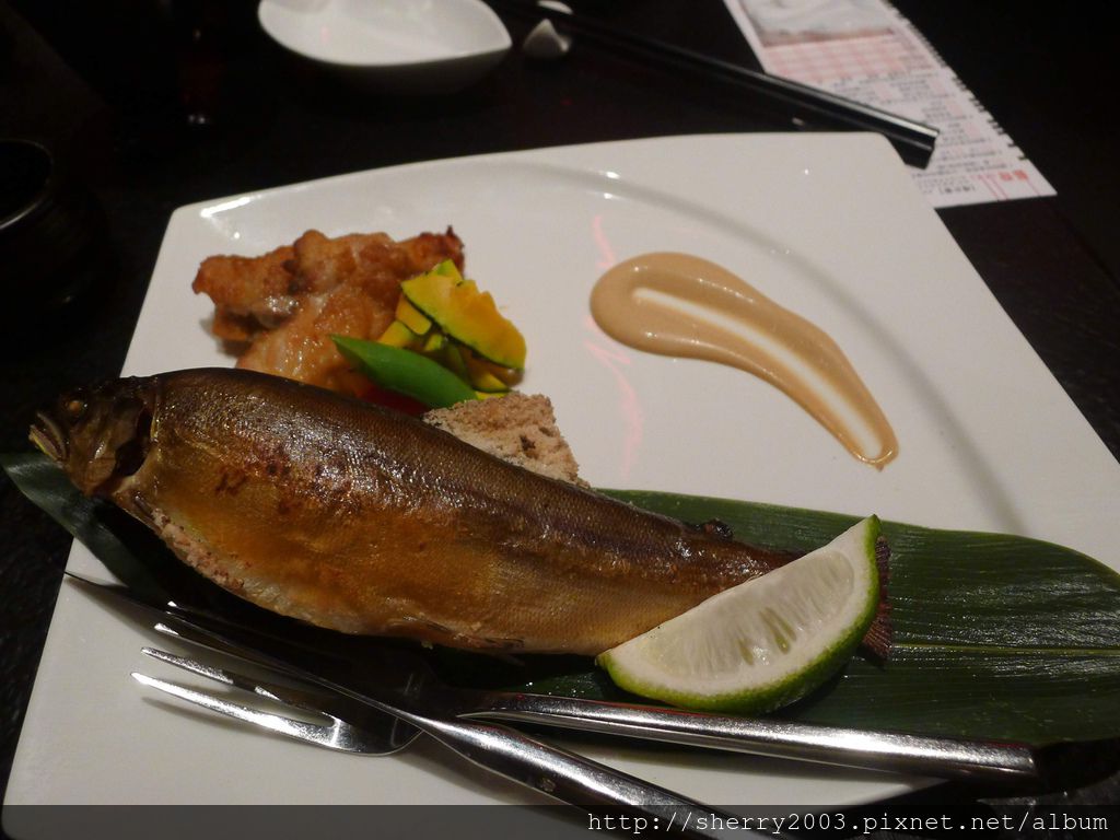 強肴~日式鹽烤雙務(雞+魚),怕魚太大隻還是雞肉太多的人就選這道吧!尤其使用的是香魚,想必會擄獲不少愛好者的心。