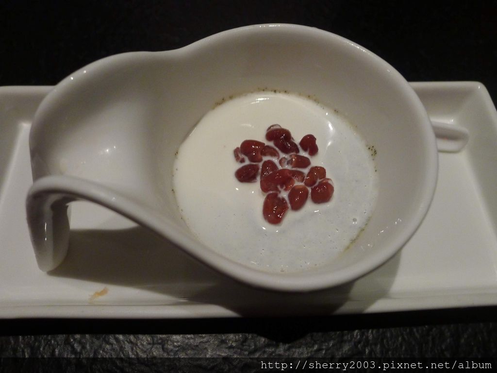甜點~紅豆芝麻布蕾,還好甜度有控制,讓對甜點很挑的我們還吃得完。